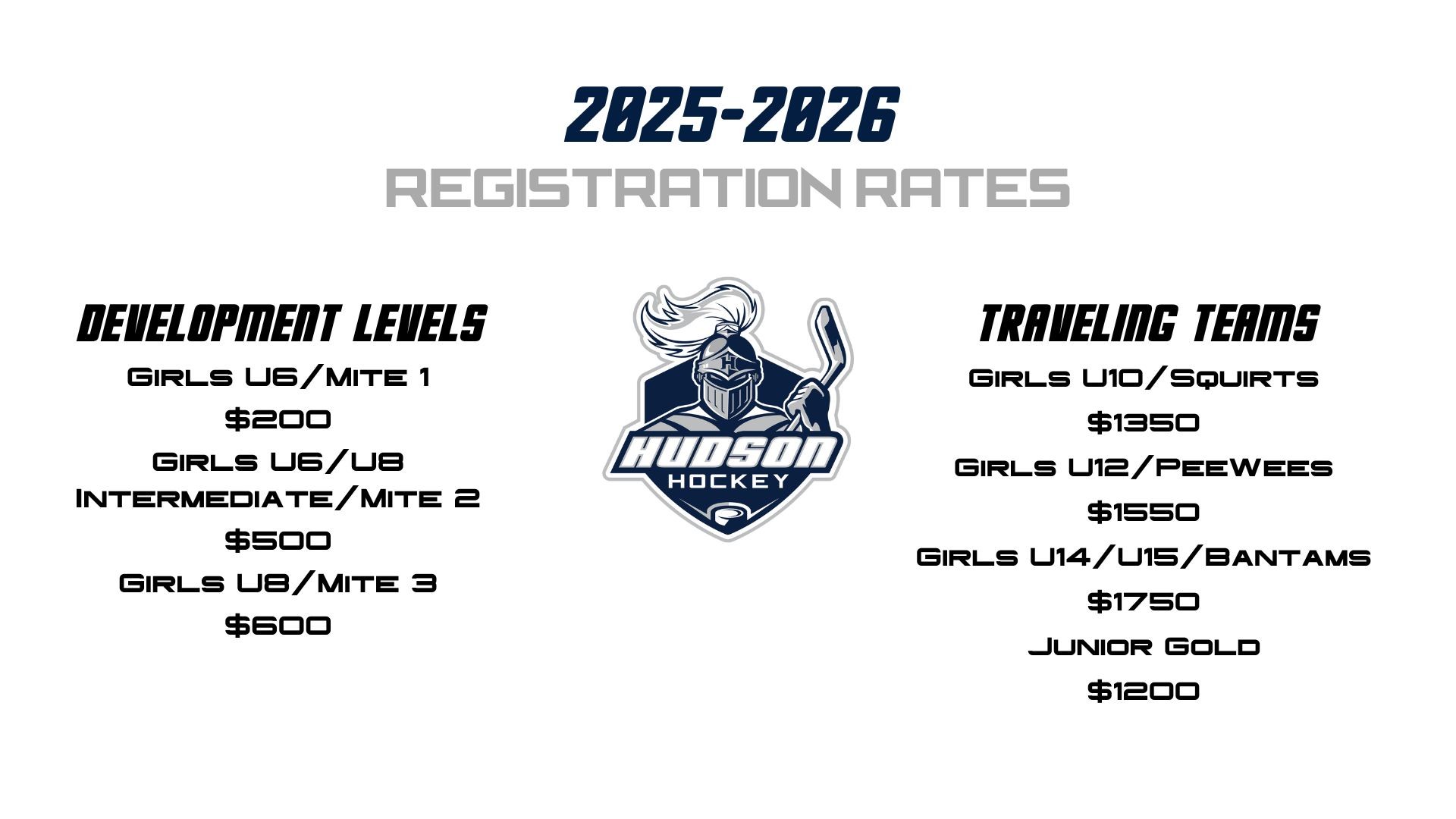 Hudson Hockey registration is now OPEN for the 2025-2026 season.