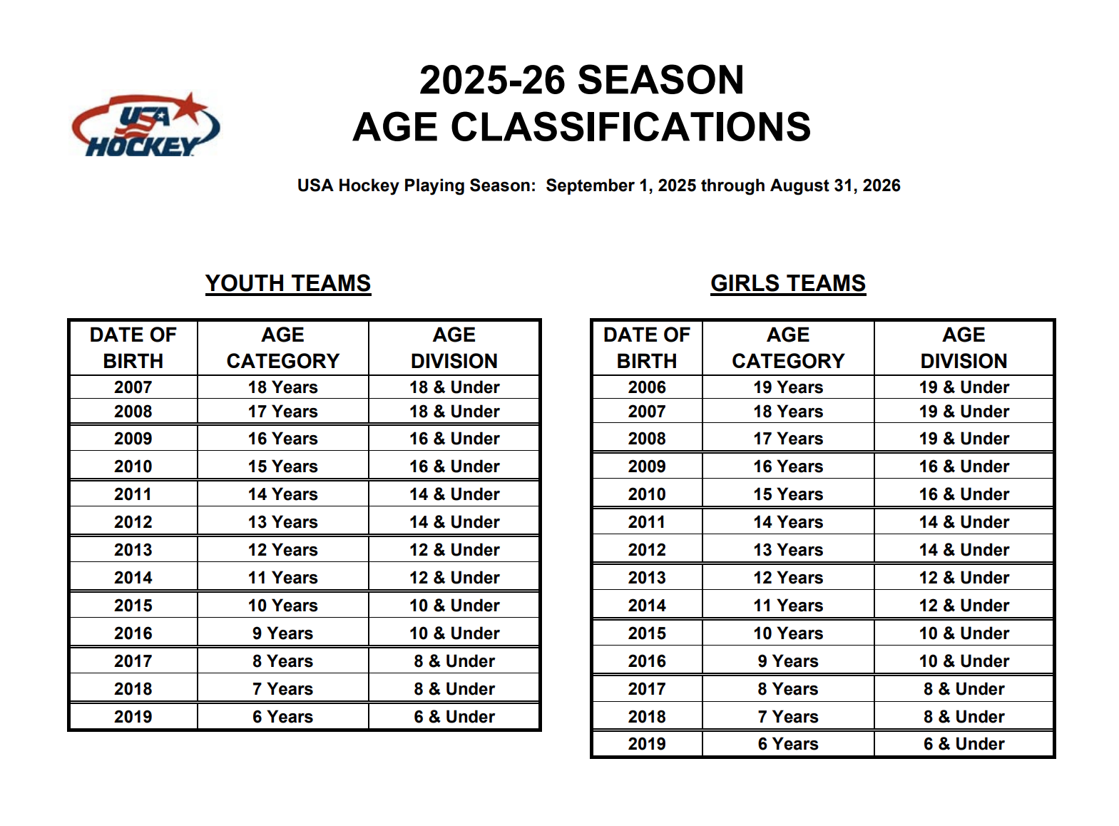 Tryouts for Girls U10, Girls, U12, Squirt, Peewee, and Bantams – will begin September 27th and run through October 6th, 2025. The Tryout process has been completely updated based on membership recommendations and surrounding association's guidance. Dates and times per level will be communicated at a later date for players participating in tryouts.